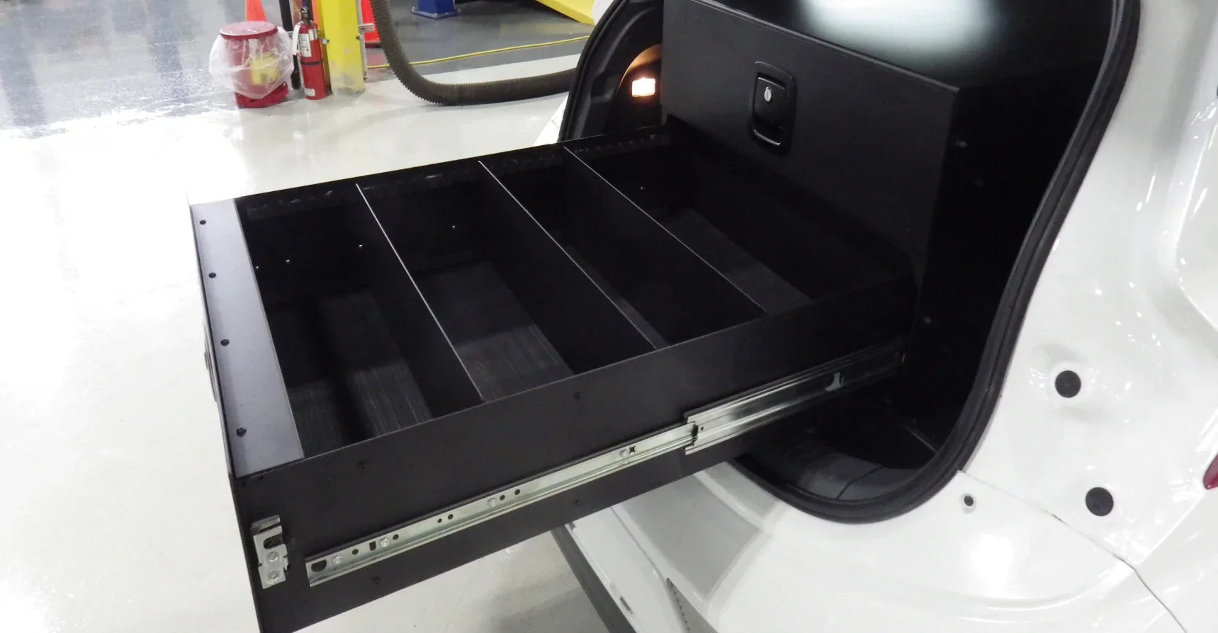 Rowland Emergency’s rear cargo storage systems are specially designed storage units for emergency vehicles, helping first responders securely transport and organize essential equipment.
